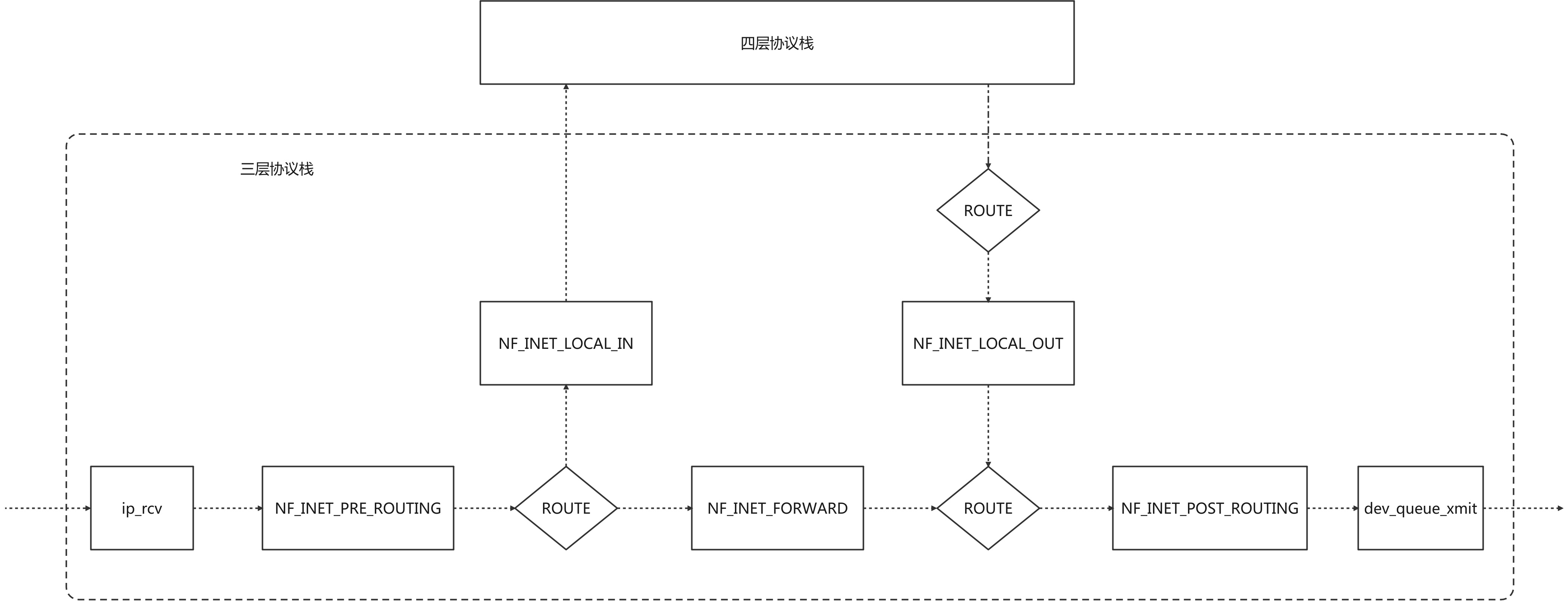 Netfilter框架的核心是五个钩子点,可以通过在钩子点注册函数,实现过滤修改数据包的功能 IPTABLES和IPVS就是通过注册钩子函数的方式来实现它们的主要功能的 ip_rcv是三层协议栈的入口函数 dev_queue_xmit最后会调用网络设备驱动发送数据包包